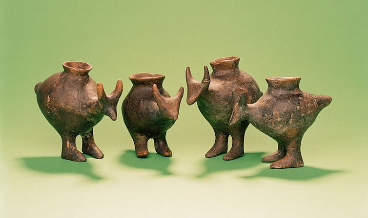 This is interesting because animal milk would only have become available as humans changed their lifestyles and settled in farming communities. It’s at that time – the dawn of agriculture – that people first domesticated cows, sheep, goats and pigs. This ultimately led to the “Neolithic demographic transition”, when the widespread use of animal milk to feed babies or as a supplementary weaning food in some parts of the world improved nutrition, contributing to an increased birth rate. The human population grew significantly as a result, and so did settlement sizes, which eventually became the towns and cities we know today. By holding these ancient baby bottles, we’re connected to the first generations of children who grew up in the transition from hunter-gatherer groups to communities based around agriculture.