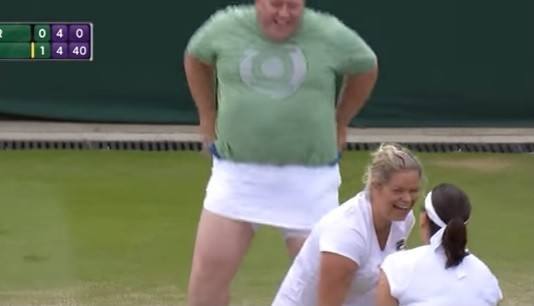 KIM CLIJSTERS GIVES A MAN FROM THE PUBLIC A SKIRT AND INVITES HIM FOR A HIT IN THE MIDDLE OF A WIMBLEDON TENNIS MATCH [embedyt] https://www.youtube.com/watch?v=Z04Oe_GULao[/embedyt]